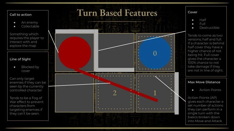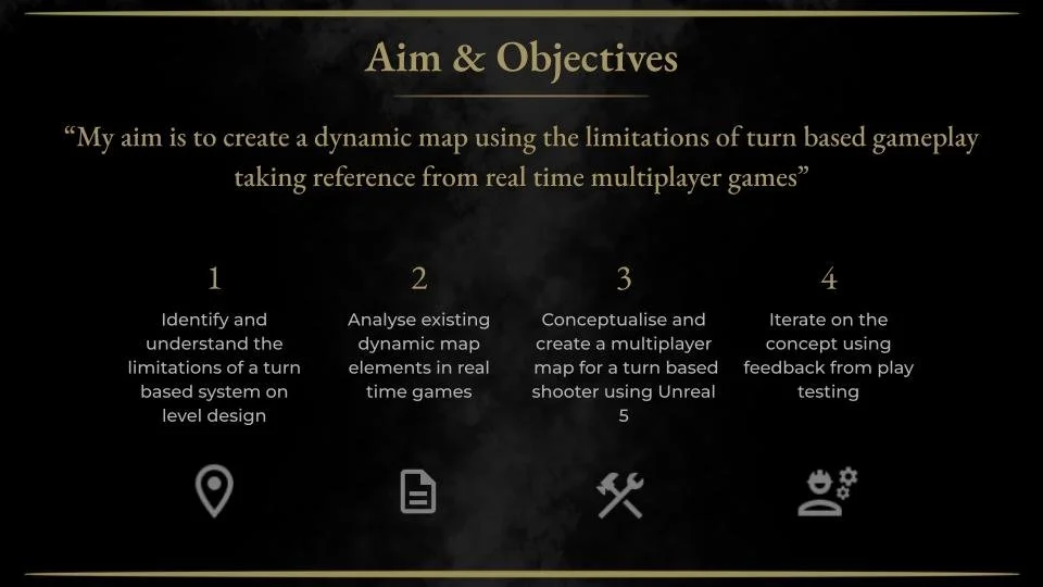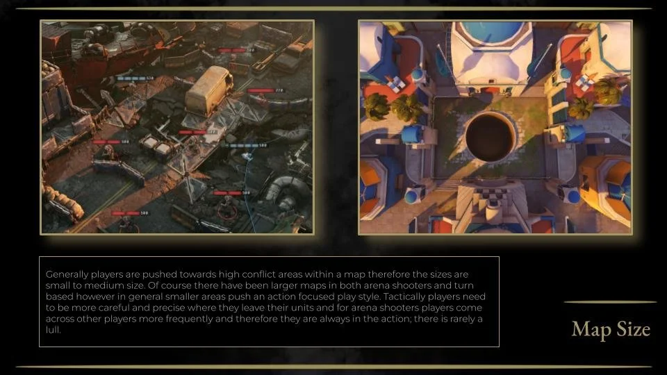 The goal for this project was a multiplayer turn based shooter utilising dynamic map elements (such as moving cover in Overwatch 2). As such I needed to learn three things before I started: level design techniques in turn based shooters, level design techniques in FPS arena shooters and dynamic elements in multiplayer games and how they affect gameplay. There were quite a few similarities between the two genres including cover placement, how high ground is used and where objectives are placed.