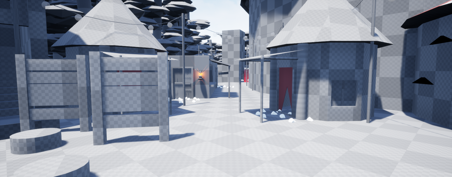 Greyboxing was done using the Unreal geometry tool with the main goal focusing on sightlines for a first person shooter. The Hunt: Showdown gameplay focuses on moving from cover to cover in gunfights and therefore players need as many options as possible to move around the compound. Insight from the developers state that players avoid open areas therefore there needed to be a careful balancing act where the compound didn’t feel too dangerous to explore however not completely safe from attackers.