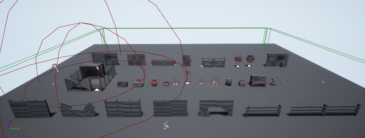 Additional blueprints created include: interactable objects such as health, ammo and lanterns, sound traps such as birds, horses, dog kennel and glass, a generator, music devices such as Piano and Gramophone. The larger set pieces (Ferris Wheel and Carousel) turn on when the generator has been activated.